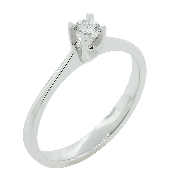 Κλασικό τετράδοντο μονόπετρο δαχτυλίδι λευκόχρυσο 18 καράτια. Φέρει διαμάντι βάρους 0.15ct. ΡΤΡ012245
